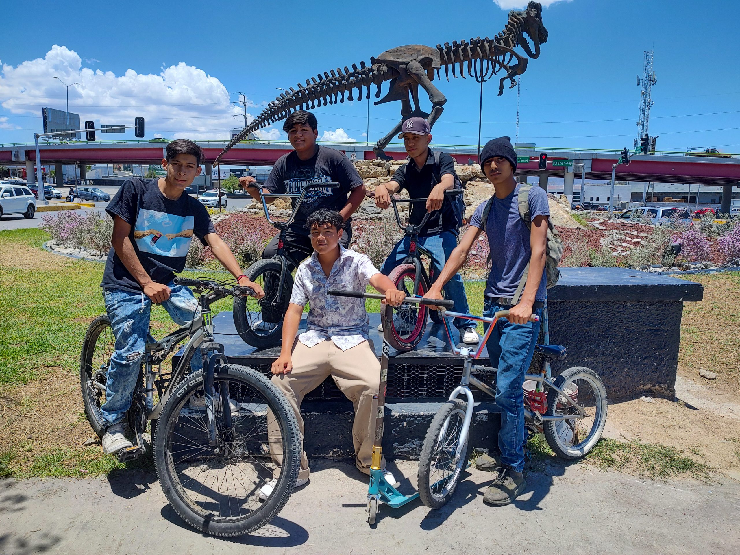 “Desde chiquito ando en bici, tenía como 6 años, nomás que no salía tanto porque no tenía con quién juntarme, pero ya después empecé a juntarme con mis amigos. Nos empezamos a mover así cuando fue eso de la rodada, el BMX, planeamos ir a una plaza, ahí decimos otra ubicación, quien quiere ir, pues va, y si no, se regresa”, explica Jesús Alberto, de 16 años, bajo un gorro que parece para el frío aunque Saltillo atraviesa la canícula.