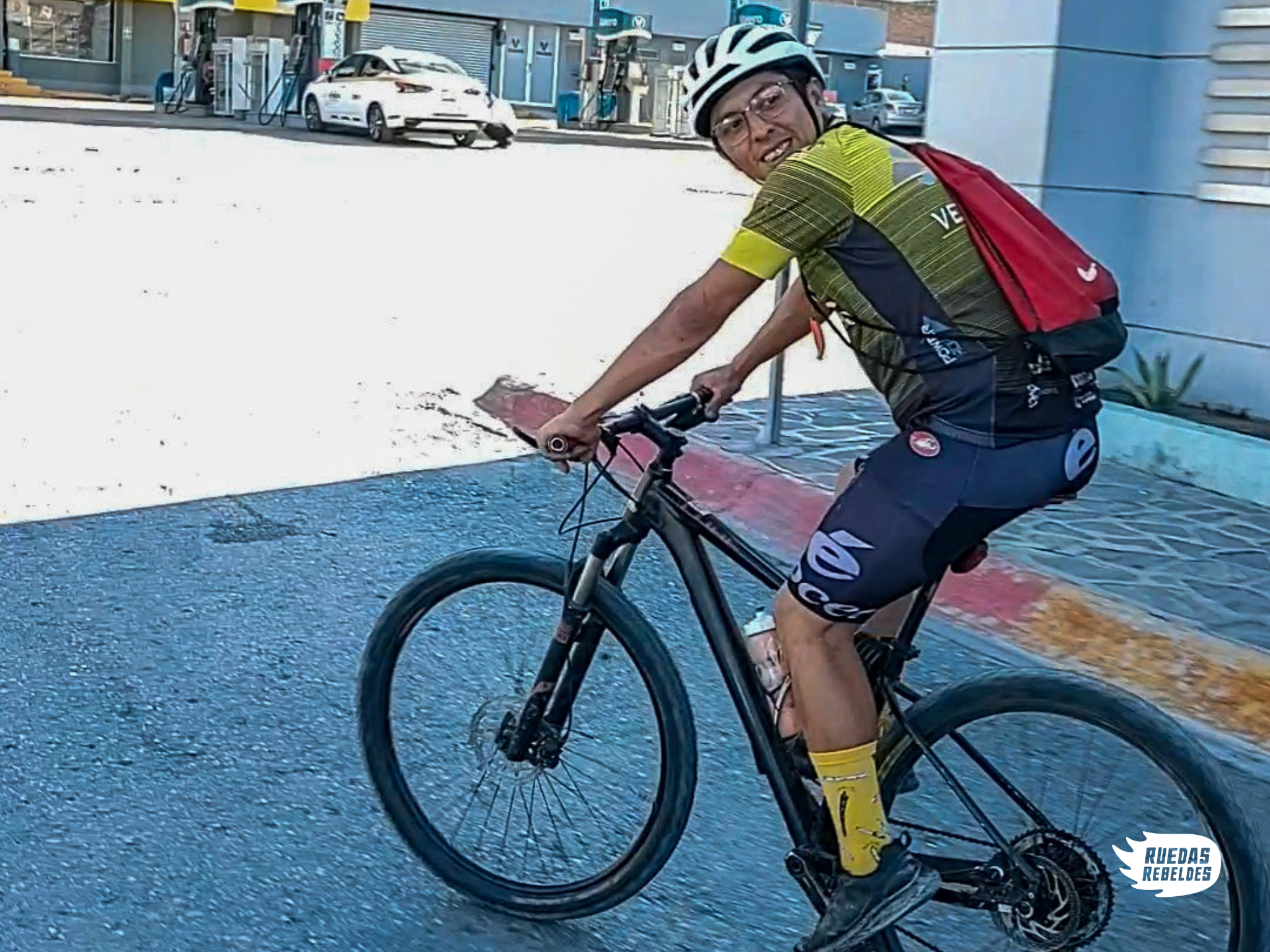 Julio trabaja como chef en un restaurante en el norte de Saltillo. Él vive a más de 12 kilómetros de distancia hacia el sur; es decir, que todos los días suma al menos 24 kilómetros entre bajadas y subidas por la ciudad. Pero su trayecto continúa porque algunos días sube más kilómetros para ver a sus amigos cerca de la Narro y otras noches participa en rodadas urbanas con colectivos ciclistas como Mitoteros y Lentos pero imparables.