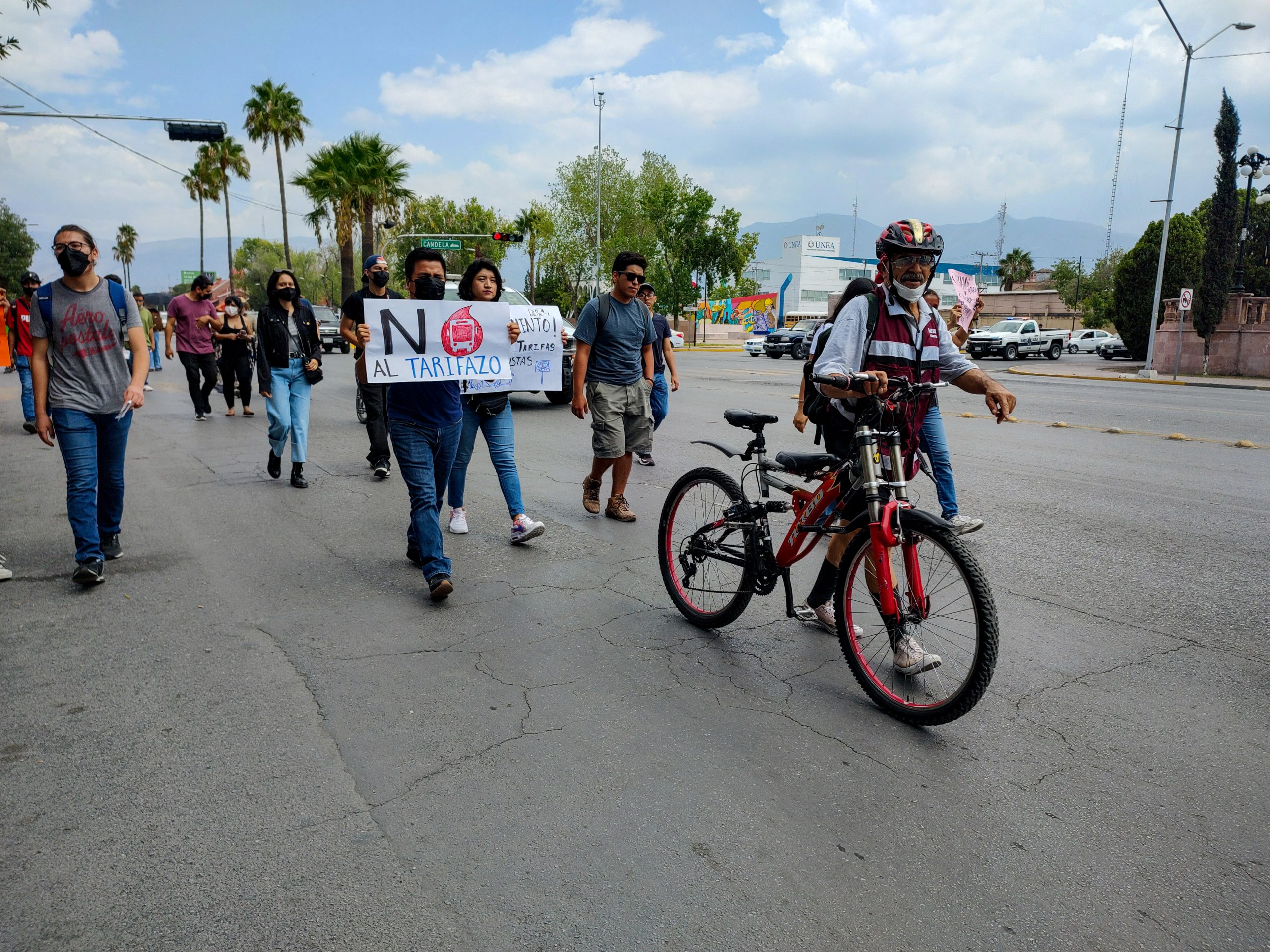 “Pero aquí andamos todavía echándole ganas a la bicicleta porque nos gusta”, dice y avanza a pie, con la bici a un lado, gritando consignas en contra del aumento al pasaje de los camiones de Saltillo y exigiendo condiciones dignas en el transporte público, para los usuarios y los trabajadores.