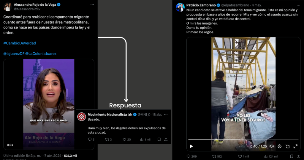 Lo mismo sucede con el excandidato a la alcaldía de Monterrey, Patricio Zambrano y con Alessandra Rojo de la Vega, alcaldesa electa de la delegación Cuauhtémoc, en la Ciudad de México quienes como parte de sus campañas, hicieron propuestas de “rescatar” espacios ocupados por migrantes con argumentos basados en desinformación, lo que vulnera los derechos humanos de la población en movilidad.